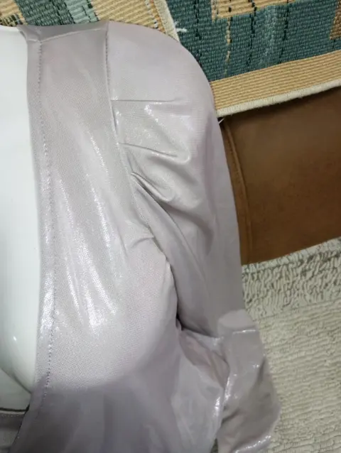 Hermosísimo Body, color tipo lila que a contraluz tiene detalles metálicos color azul/morado, manga larga abullonada, escote pronunciado en V, tipo cruzado tela que estira muy poco (tipo stretch) marcada como talla M , queda a partir de S. No te lo puedes perder!!!!
