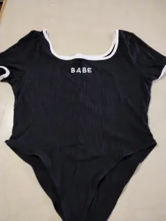 Body Negro Shein Talla 4XL. Body Negro con Blanco Marca Shein Talla 4xl Tela tipo Camiseta con Bordado con Letras*Se puede hacer un paquete con varias prendas para pagar un solo envío