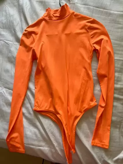 Body neon. Body naranja neon, manga larga, tela stretch, cuello alto, talla S