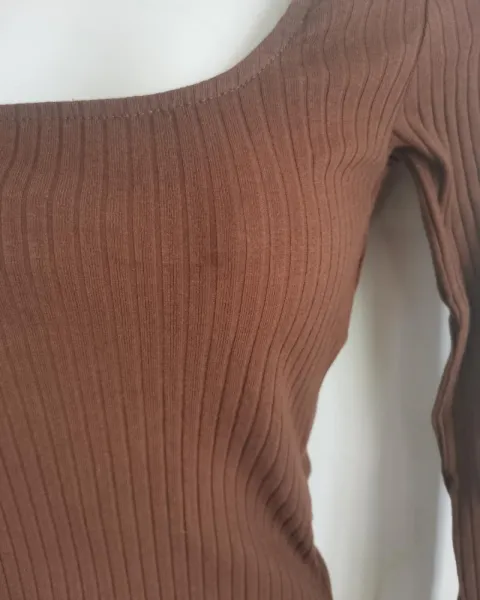 Body acanalado manga larga color café canela, muy bonito, se abrocha con botoncitos, en perfecto estado.