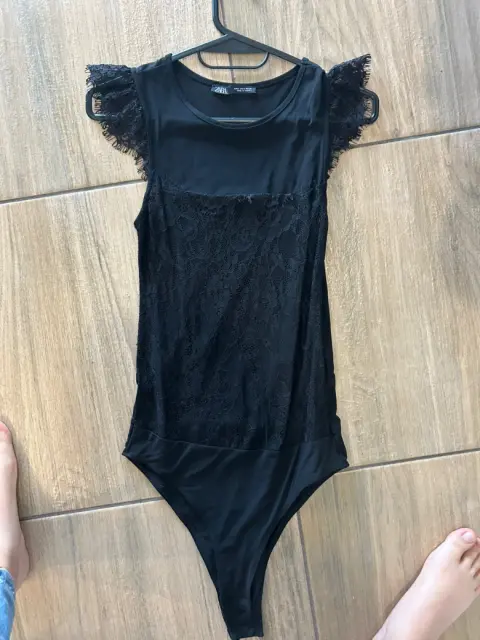 Body color negro de Zara, es talla S, tiene encaje y transparencia, igual tiene broches en la parte de abajo, se utilizó 1 vez y no tiene ningún detalle