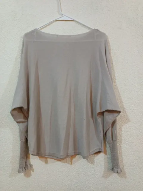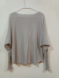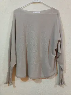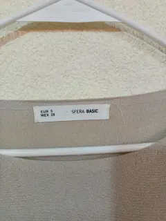 Blusa de punto, cuello redondo, manga larga, con detalle a la altura de la muñeca, color beige en perfectas condiciones