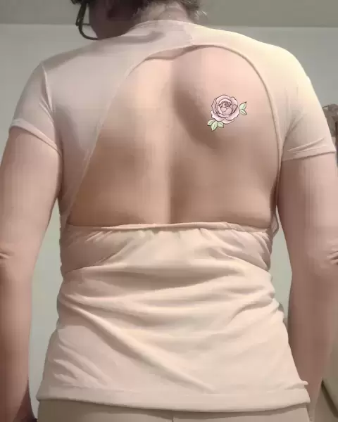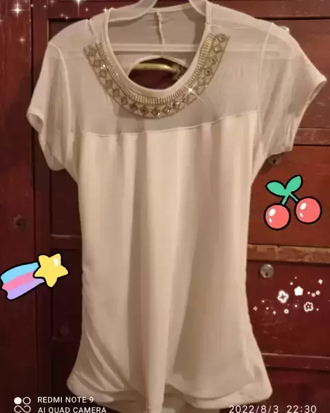 ✨🤗✨Linda blusa beige,con adorno muy bonito en el cuello y media espalda descubierta con mangas cortas👍🏻🌟