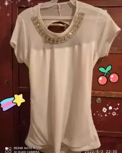 👉🏻✨ Bonita blusa beige de manga corta ⭐. ✨🤗✨Linda blusa beige,con adorno muy bonito en el cuello y media espalda descubierta con mangas cortas👍🏻🌟
