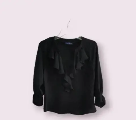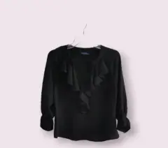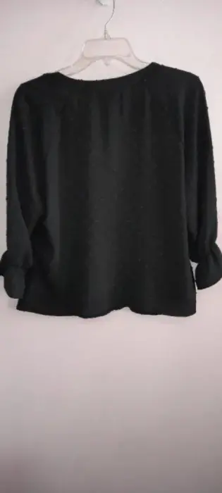 Blusa casual escote V,negra talla grande con bonitos detalles en cuello y mangas. Nueva, sin desperfectos.