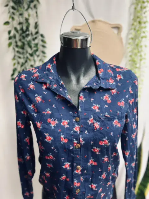 Linda blusa de dama azul con flores rojas, marca FOREVER 21, talla S, puede quedar a M porque estira un poco. Súper fresca,☘️100% Algodón, ☘️🌸Medidas: 34 hombros, 43 Axilas, 58 largo🌸🎁Incluye Regalito Sorpresa Gratis 🎁