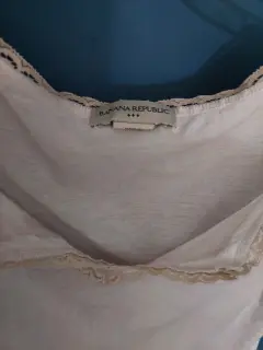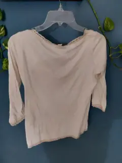 Bonita blusa fresca y amplia, manga tres cuartos, y detalles de encaje en mangas y cuello, en excelente estado