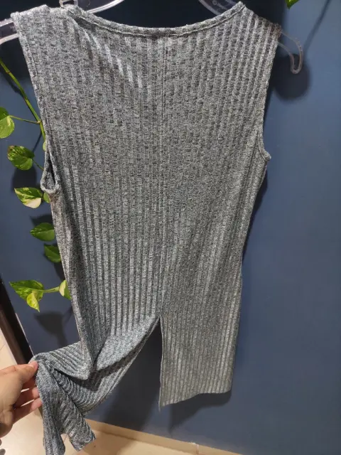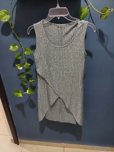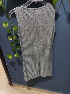 Bonita blusa larga, con destellos plateados y abertura en la parte de atrás, cola de pato