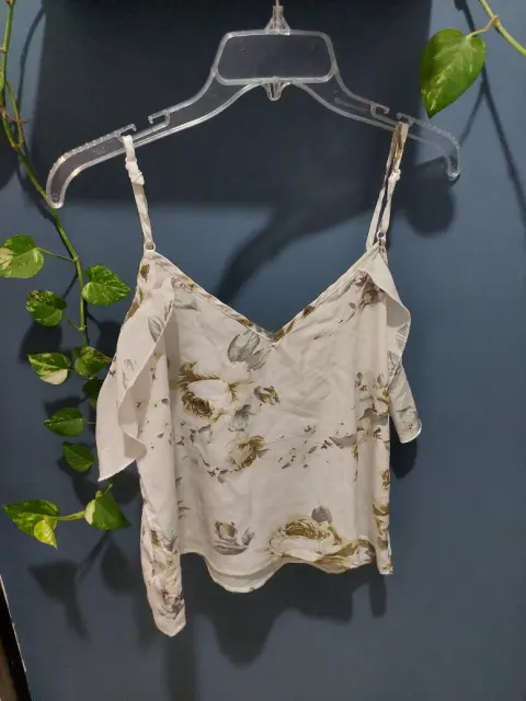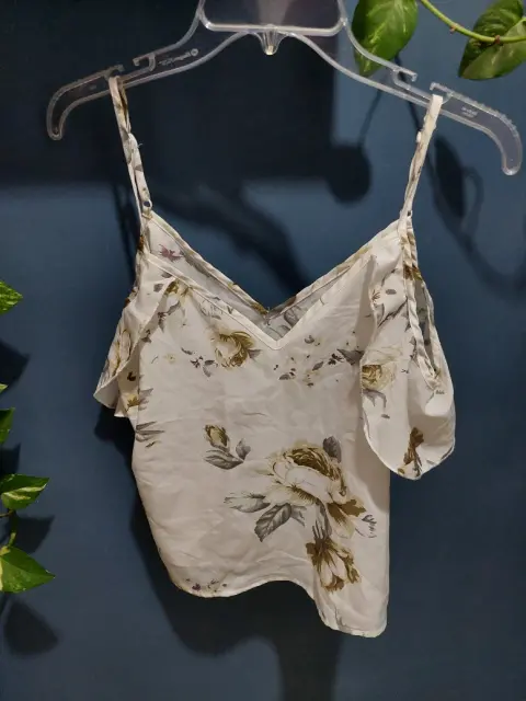 Bonita blusa tirantes. Bonita blusa floreada de tirantes ajustables, a la cintura, con olanes en hombros