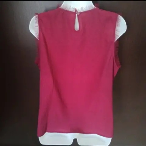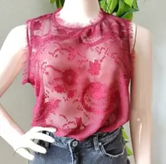 Bonita blusa, traslúcida color vino.. Blusa STOP color vino sin mangas. Escote redondo. La tela de la parte de frente es transparente, queda súper bien con un bralette. Talla M