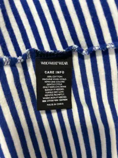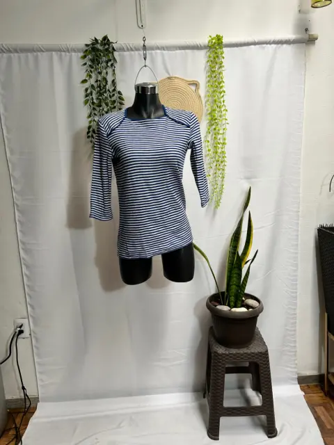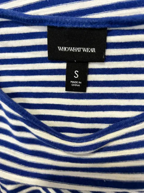 Bonita blusa WHO WHAT WEAR 🌸🌸☘️☘️. Blusa Dama WHO WHAT WEAR, de rayas azules, súper cómoda y fresca, ☘️100% Algodón, ☘️talla S(M), viene amplia, 🌸Medidas, 38 hombros, 43 Axilas, 61 largo.🌸🎁Incluye Regalito Sorpresa Gratis 🎁