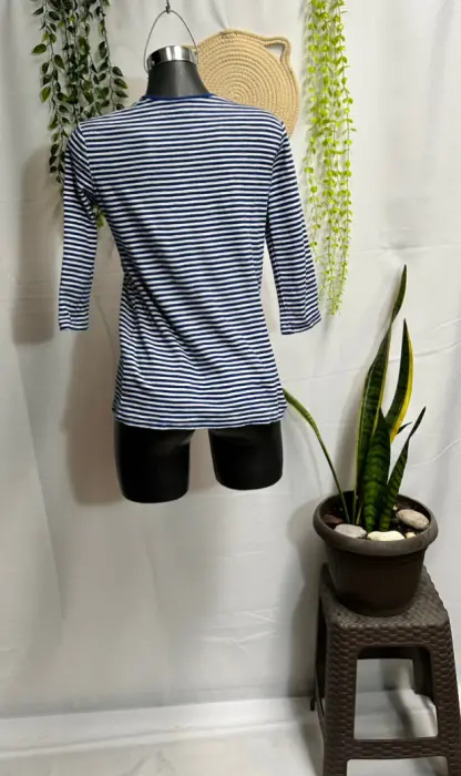 Blusa Dama WHO WHAT WEAR, de rayas azules, súper cómoda y fresca, ☘️100% Algodón, ☘️talla S(M), viene amplia, 🌸Medidas, 38 hombros, 43 Axilas, 61 largo.🌸🎁Incluye Regalito Sorpresa Gratis 🎁