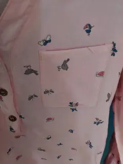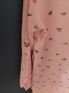 Bonito blusón fresco, rosa con estampados de caracol y mariposas, excelente estado