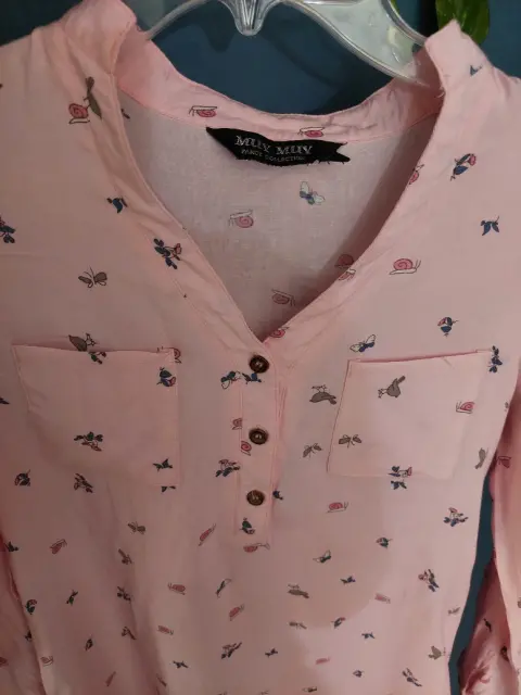 Bonito blusón rosa. Bonito blusón fresco, rosa con estampados de caracol y mariposas, excelente estado