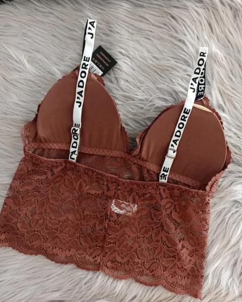 Bralette color Café con encaje, largo unitalla, copas removibles abarca 30-36, CH/M, se ajusta perfecto al cuerpo.Tirantes ajustables.
