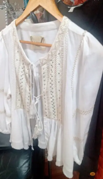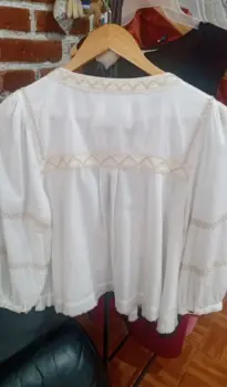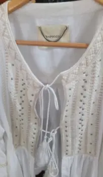 Camisa de algodón bordada Rapsodia. Hermosa camisa de algodón bordada nueva Rapsodia con un bordado en color blanco y beige combinado con apliques Mangas ligeramente bombachas realzadas con dos hileras de bordados a super precio!