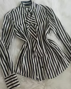 Camisa ZARA talla S , rayas verticales negro y blanco , tiene detalle en el pecho que la hace salir de lo cotidiano , no tiene defecto alguno solo se uso un par de veces 🥰