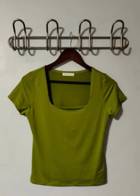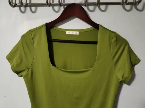 Camiseta básica corta para mujer cuello cuadrado color verde 🍏 💚🌿 talla L la tela se siente super fresca es totalmente nueva 👚 luce como en foto ilustrativa va señida al cuerpo.