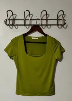 Camiseta básica para mujer verde 💚. Camiseta básica corta para mujer cuello cuadrado color verde 🍏 💚🌿 talla L la tela se siente super fresca es totalmente nueva 👚 luce como en foto ilustrativa va señida al cuerpo.