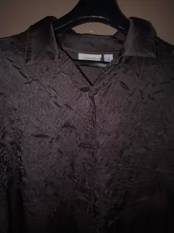 Camisola de vestir color gris. Camisola para dama en seda corrugada, color gris plata