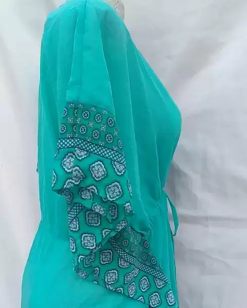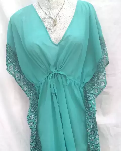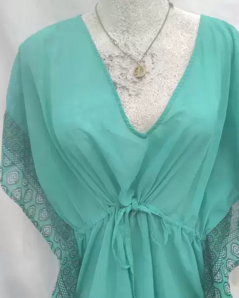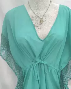 Camisón color turquesa. Bluson de gasa con jaretas en la cintura, color turquesa, talla xl.