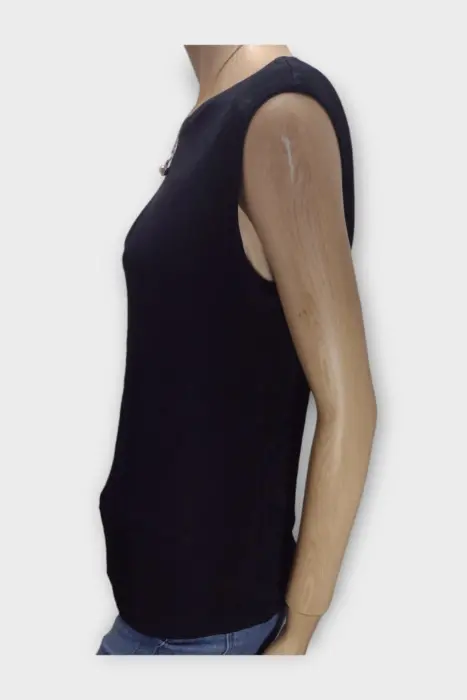 Coldwater Creek Blusa Dama Acetato Negro MBlusa marca Coldwater Creek 98% Acetato 2% SpandexMarca: Coldwater CreekOrigen: USAMaterial: 98% Acetato 2% SpandexTalla: MEstilo: CasualPatrón: LisoColor: NegroCierre: AbiertoPecho: 42Largo: 56Hombro: 39Manga: Sin MangasRopa de USO en muy buen estado