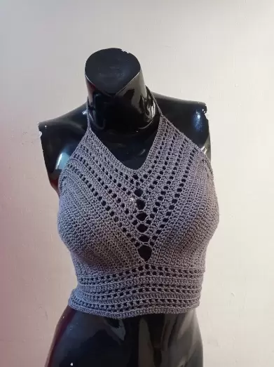 Crop top 100% artesanal, unitalla se ajusta de la espalda, elaborado con hilaza de maxima calidad italiana, color gris oxfordEs nuevo, sin detalles, sin etiqueta, dice puesto una vez x impuestos