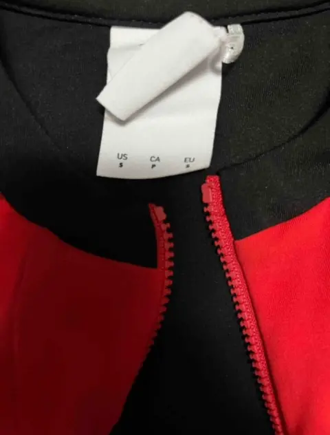 Talla S, cuenta con cierre en la parte de frente, es un poco justo de licra. Queda un poco arriba del obligo.