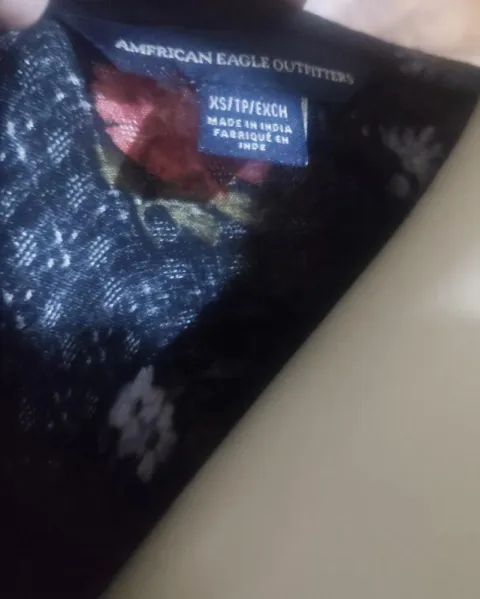Crop top floral, base negro, talla XS a S Nieva sin etiqueta, sin ningún detalle, marca AMERICAN EAGLE.