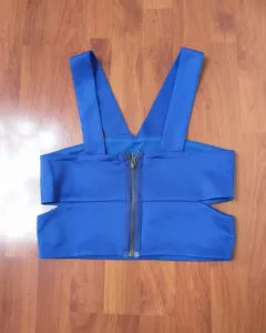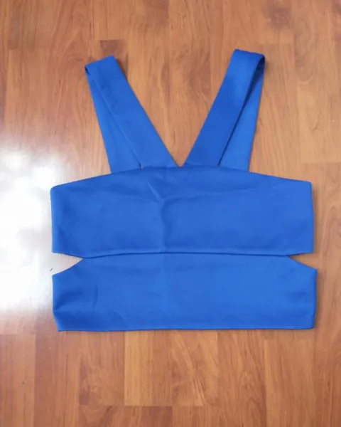 Lindo crop top azul rey, con aberturas en los costados, cierre en espalda, forro interior, talla M. Puesto una vez. En perfecto estado.