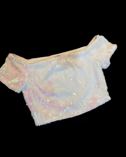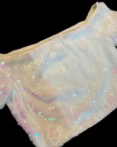 CROP TOP BLANCO LENTEJUELAS 🤍✨. TOP BLANCO DE LENTEJUELAS, solo se usó una vez, está en perfecto estado✨🤍✨🤍✨🤍✨🤍