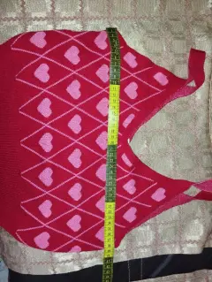 Crop top corazones. Hermosa blusa de tirantes tipo crop top, de punto, con detalles super lindos de corazón, escote V y tejido tipo resorte en la parte inferior, marcado como talla G. Medidas en la última foto ❤️Ideal para un outfit súper kawaii 🩷