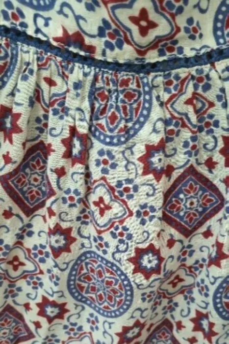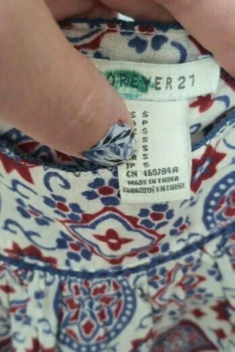 Crop top con estampado boho marca Forever 21.Beige con estampado azul y vino.100% algodónTalla S. Medidas aproximadas: 42cm de axila a axila,47cm de largo.*TODAS MIS PRENDAS SE DESINFECTAN CON LYSOLLAVANDERIA PARA TU MAYOR TRANQUILIDAD*