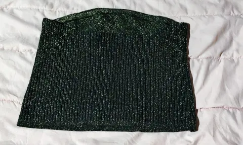 Crop Top tejido en color negro y dorado. Talla XL, pero queda a LSin detalle.Queda muy muy lindo.Las fotos no le hacen justicia