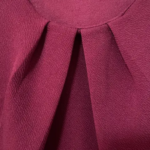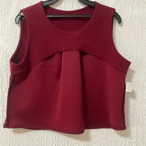 Blusa crop top, color vino.Marca Líneas.Tela con textura.Talla grande.Muy cómoda.Poliéster y elastano.Por dentro tuvo un jaloncito que hace que al frente tenga una línea como de un doblez casi imperceptible (ver fotos).