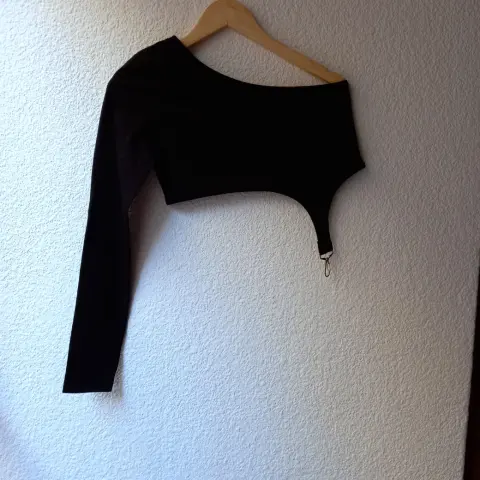 Croptop Asimétrico color negro, de excelente calidad con ajuste y forma. Para más prendas hermosas visita mi closet.