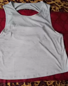 Duo blusa blanca y blusa gris. Duo de blusa blanca de una manga larga SheIn (nueva, sin etiqueta) y blusa gris sin mangas destapada de la espalda. (Poco uso)