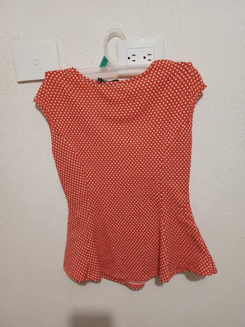 Duo de blusas. Blusa salmón con puntos blancos y transparencia en el pecho, súper strech, y blusa azul bordada a mano artesanal