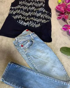 Lindo paquete de jeans entubados y blusa casual ambos talla xs en perfecto estado, ideal para un look casual con estilo