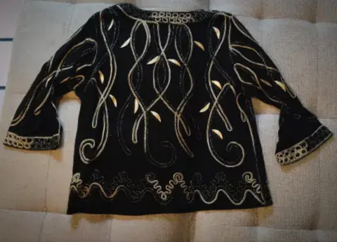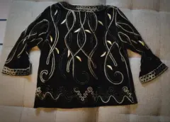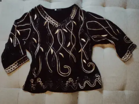 Mangas 3/4, muy bonito detalle bordado, las fotos no le hacen justicia, el bordado es muy bonito, sin defectos. Tela muy suave y Spandex, Talla 1xl