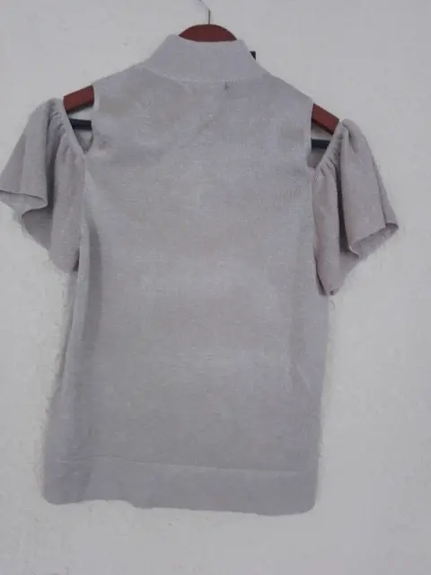 Blusa nueva en tono dorado brillosa, hombros descubiertos, manga corta, de cuello, ligera
