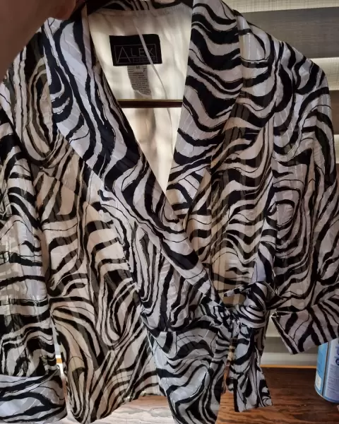 Elegante blusa estampado Animal Print. Blusa confeccionada en poliéster de excelente calidad, con forro, mangas 3/4 translúcidas, puños anchos; cruzada formando un moño lateral.Prenda muy combinable, con la que conseguirás variados y distinguidos outfits