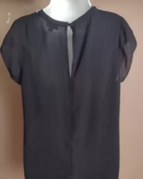 Elegante blusa tela tipo shifon 🤩cuello bordado con canutillo y chaquira en color plateado , escote en espalda , cruzada al frente talla S