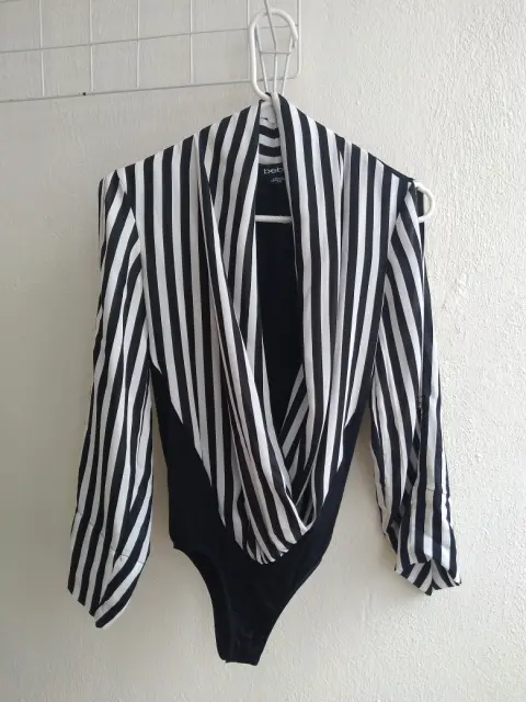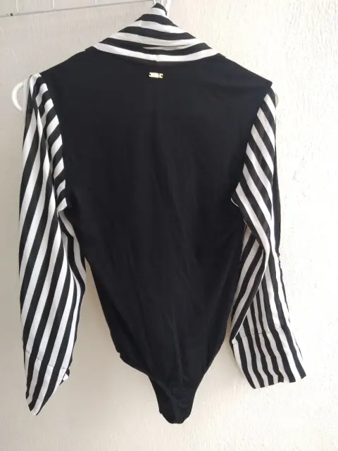 Elegante body. Bello body a rayas, opciones de mangas, tela fina, mangas con aberturas