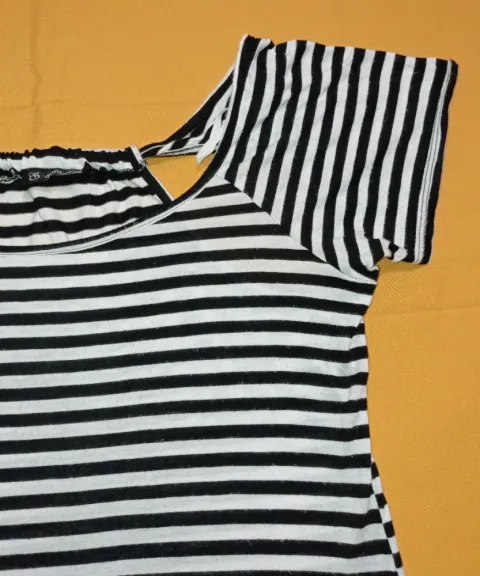 Blusa a rayas en tela fresca con strech,, es usada, no rota, no manchada, algunas bolitas en la tela por las lavadas, pero aun con vida de uso. Busto: 50 cmCintura: 48 cmCadera: 54 cmLargo: 65 cmLa blusa se midió sin estirarla, aun da de 5 a 10 cm el strech. Lleva de regalito unos aretes dormilona de plata Ley 925.