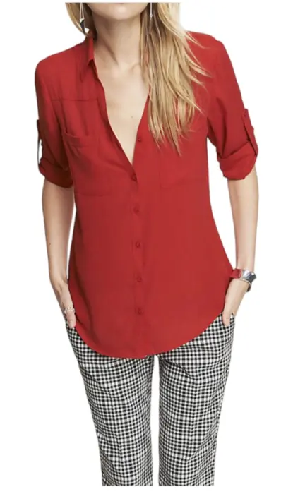 Express Portofino elegante camisa Dama !!. Express Portofino camisa manga larga en talla XS, color vino. Mangas ajustables con botones y bolsos delanteros. Poco uso (semi nueva) sin detalles.Material : 100 poliésterMedidas: 62 cm de largo, 72 cm ancho espalda -pecho, 86 cm de ancho y 58 cm de largo en mangas.