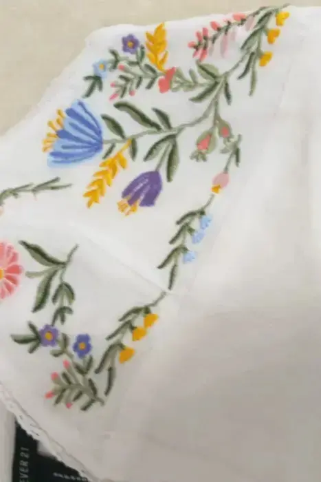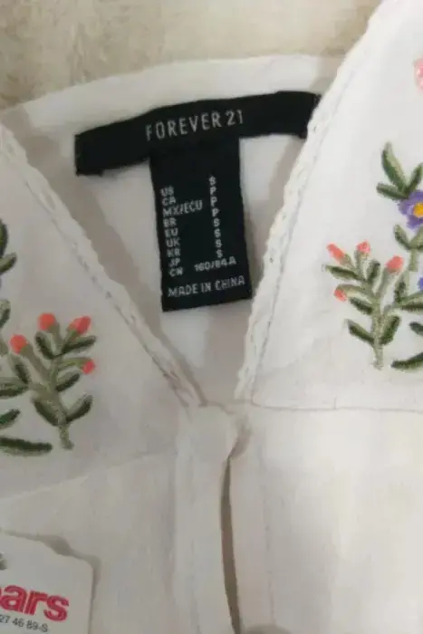 FOREVER 21 TOP BORDADO TALLA S. FOREVER 21 TOP BORDADO S, blanco, bordado en busto, y botones, con forro talla SMedidas:De axila a axila 42cmLargo 42cm