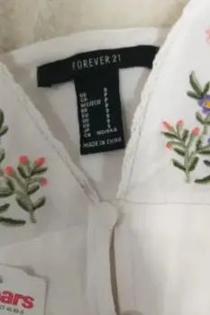 FOREVER 21 TOP BORDADO S, blanco, bordado en busto, y botones, con forro talla SMedidas:De axila a axila 42cmLargo 42cm