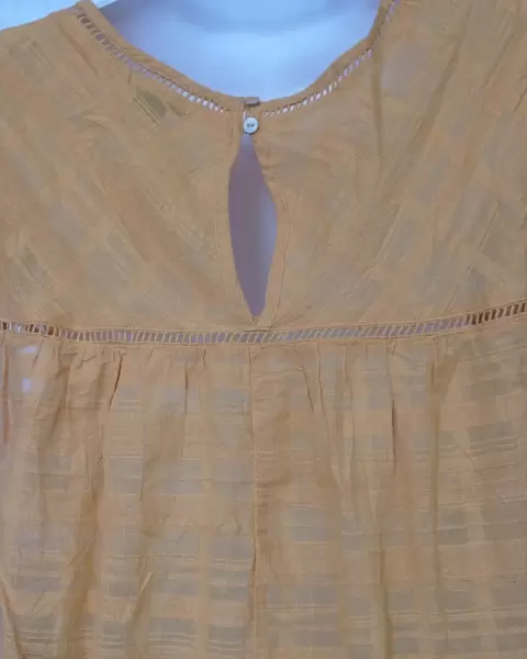 Fresca blusa ligera. Bonita blusa fresca, holgada con bonitos detalles deshilados. Las mangas tienen olan lo que hace que se vea muy femenina. Trasluce un poco.