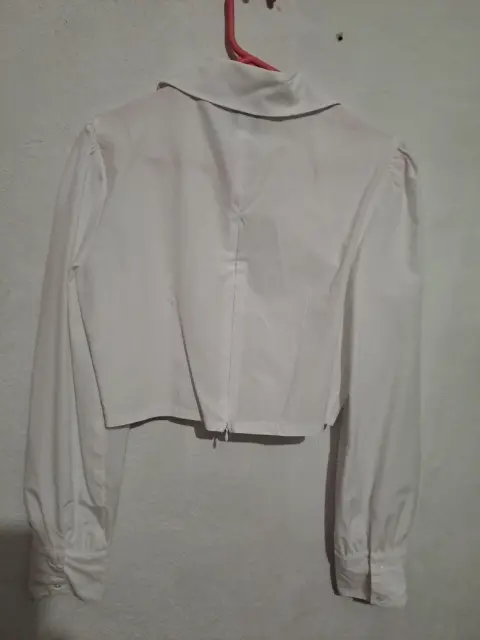 Blusa blanca corta talla 7, marca Jlo, en buenas condiciones, esperando una segunda oportunidad, manga larga y adorno en la cintura.